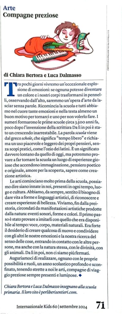 Auguriamoci di realizzare, ognuno con le proprie possibilità e ruoli, un anno scolastico profondo e sconfinato, tenendo strette a noi le arti, compagne di viaggio preziose sempre presenti e luminose.