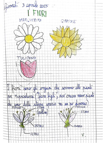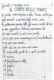 Dopo aver discusso, sempre partendo dall’osservazione dei loro disegni, sulle parti del corpo delle piante, abbiamo scritto un breve testo sul quaderno.