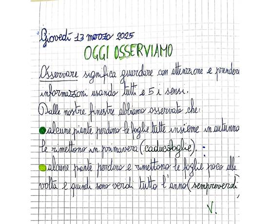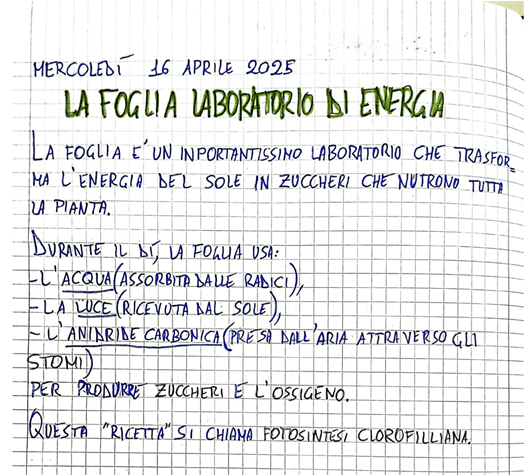 Una volta risaliti in classe, abbiamo come d’abitudine, annotato sul quaderno le osservazioni, in un testo semplice, ma condiviso.