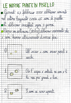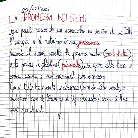 L’esperienza è stata raccontata sui quaderni, creando un semplice racconto illustrato e condiviso dello sviluppo dei semi.